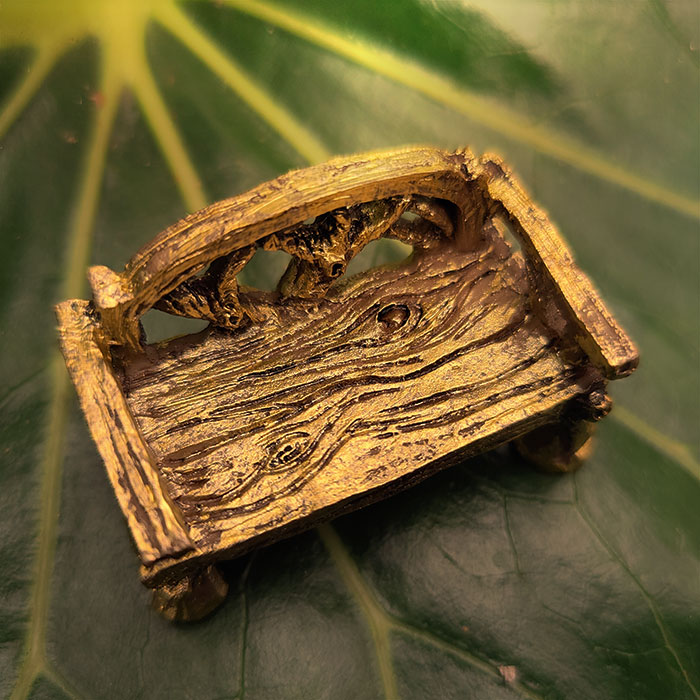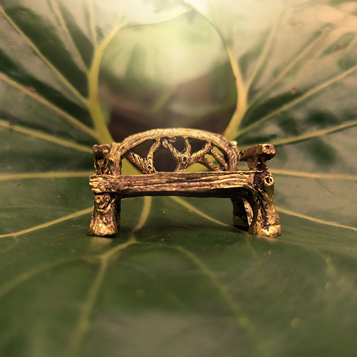 For the fairy who wants to sit and make a statement. This gold-toned, ornate bench says, “I enjoy long walks through enchanted glades and judging lesser furniture.” Perfect for dramatic sighing, taking afternoon tea with wee winged guests, or simply reminding woodland visitors that your fairies have taste. Pair with matching chair for peak luxury.