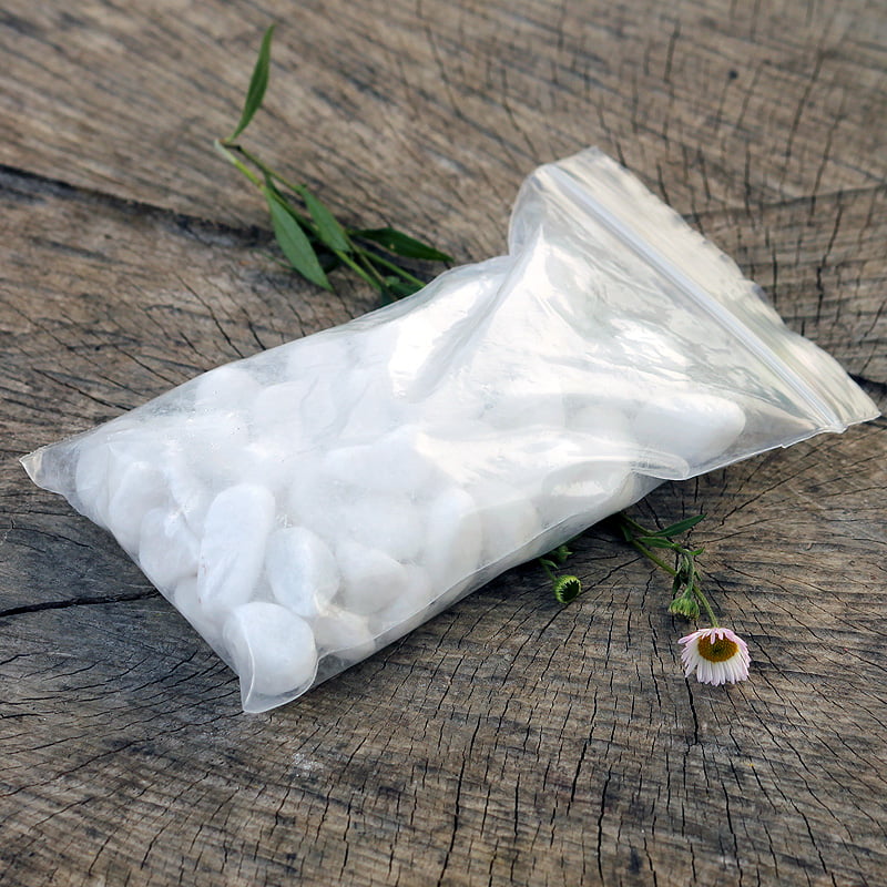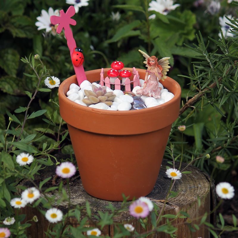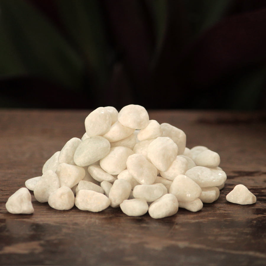 These smooth white pebbles make an effective stepping-stone path or terrain for your fairy garden.